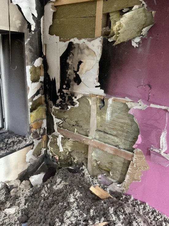 Rund 60 Minuten dauerten der Einsatz am Sonntagnachmittag, zu dem die Feuerwehr Garrel um 16:06 Uhr mit sechs Fahrzeugen und 30 Feuerwehrleuten anrückte. Zuvor hatten die Bewohner eines Hauses an der Pfarrer-Landgraf-Straße in ihrer Wohnung einen Brandgeruch bemerkt. Im Obergeschoss des Hauses stellten sie fest, dass Steckdosen und ein Regal in Brand geraten waren. Glücklicherweise konnten die Bewohner mit zwei Feuerlöscher das Feuer löschen. Dafür öffneten sie auch Teile der Leichtbauwand. Um an eventuelle Glutnester zukommen, öffnete die Feuerwehr weitere Bereiche der Wand und der Decke, um sie anschließend mit einer Wärmebildkamera zu kontrollierten. Parallel wurde das Gebäude mit einem Überdrucklüfter vom Rauch befreit.