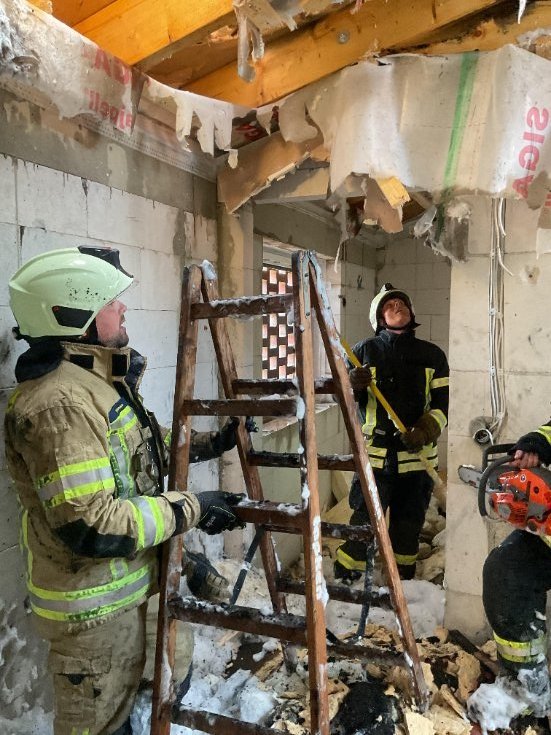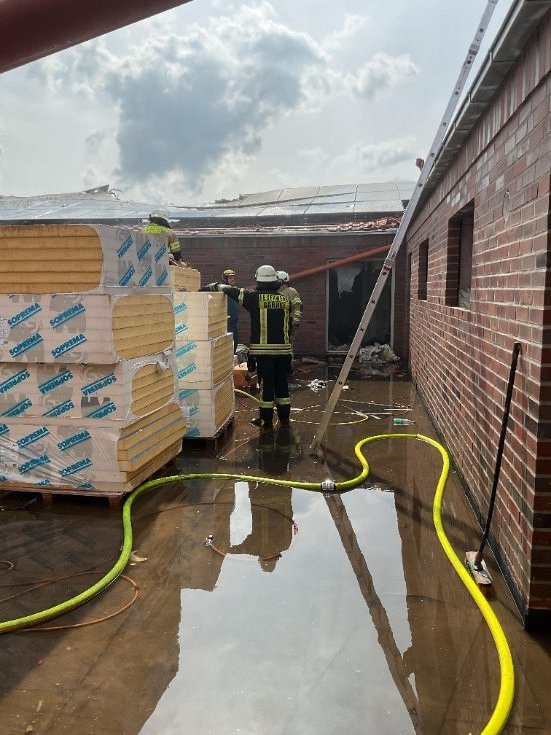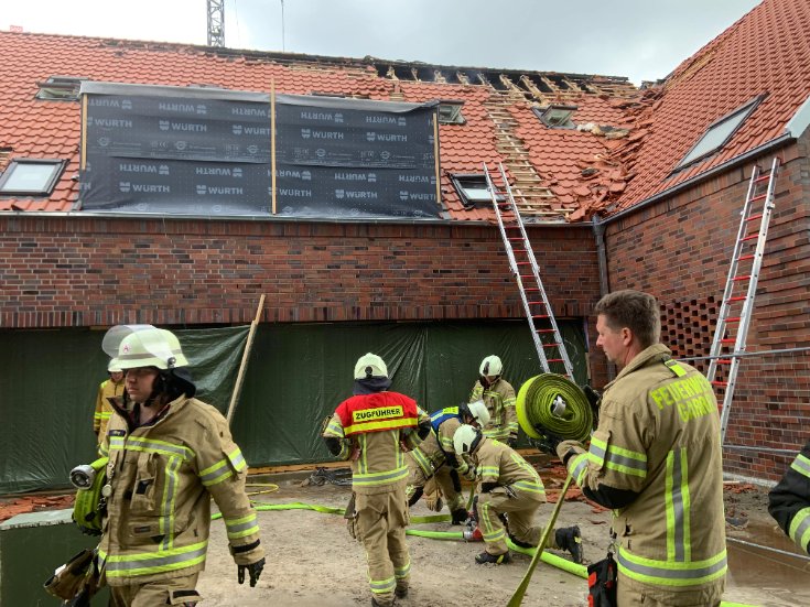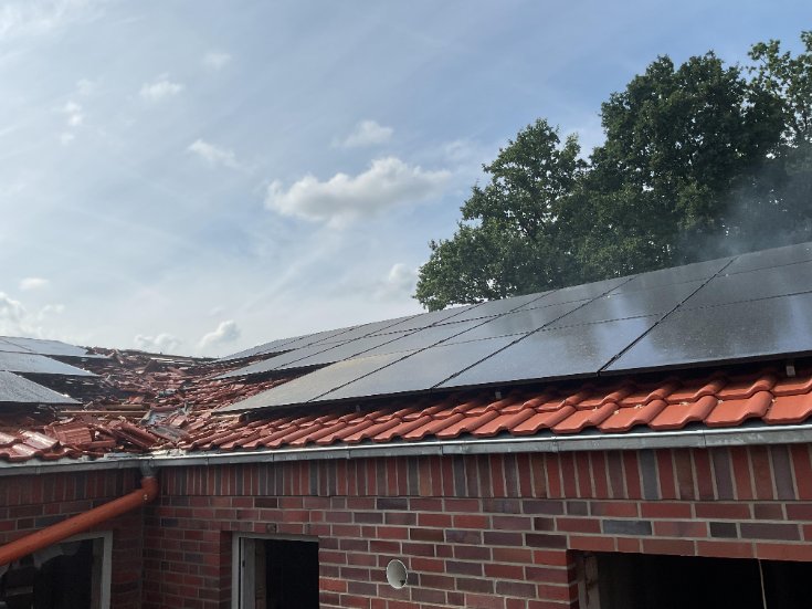 Zudem gab es bei den Löschmaßnahmen auch Unterstützung von dem Technischen Hilfswerk aus Cloppenburg. Unter Sicherheitsmaßnahmen montierten die Mitglieder die Photovoltaikanlage ab und entfernten die Dachpfannen. Ein Fachberater stand der Einsatzleitung für Fragen zur Bausubstanz und Statik zur Verfügung.