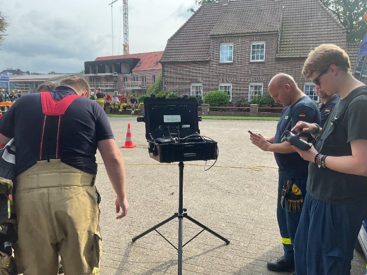 Eine große Hilfe waren auch die Absperrmaßnahmen rund um die Einsatzstelle durch den Bauhof der Gemeinde Garrel und der Polizei. Außerdem wurde die Einsatzleitung vor Ort durch den Fernmeldezug mit ihrem Einsatzleitwagen 2 (ELW2) und Kreisbrandmeister Arno Rauer sowie sein Stellvertreter Stefan Abshof entlastet.