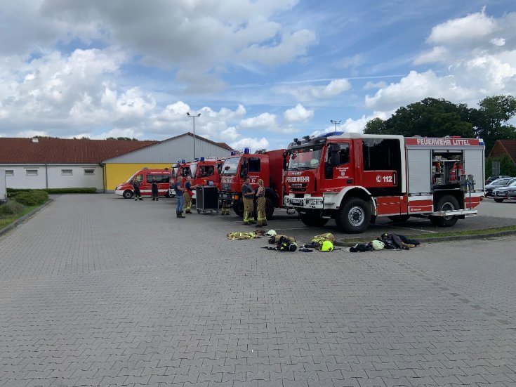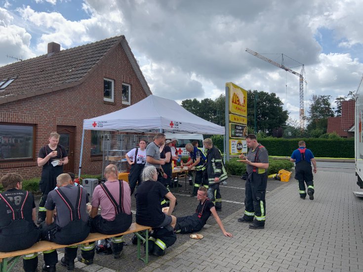 Weil eine Feuerwehrfrau über Kreislaufprobleme klagte, musste die DRK Bereitschaft Garrel, die zur Eigensicherung mit alarmiert wurde, ebenfalls tätig werden. Nach einer kurzen Behandlung ging es ihr wieder besser.