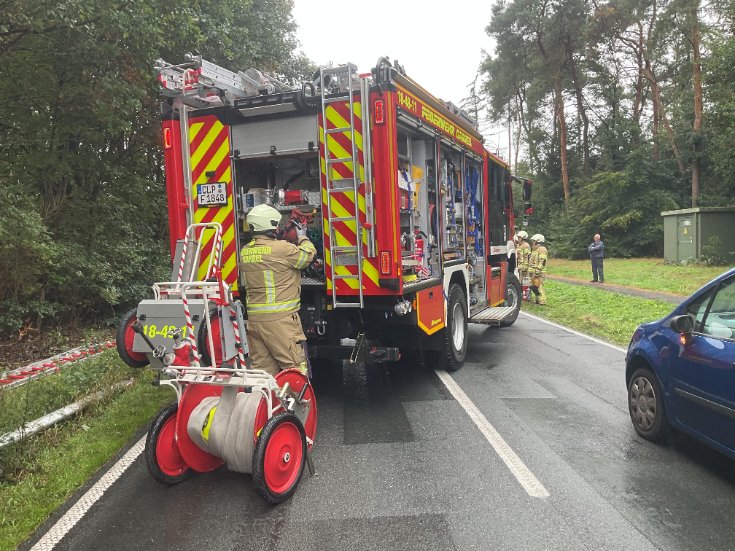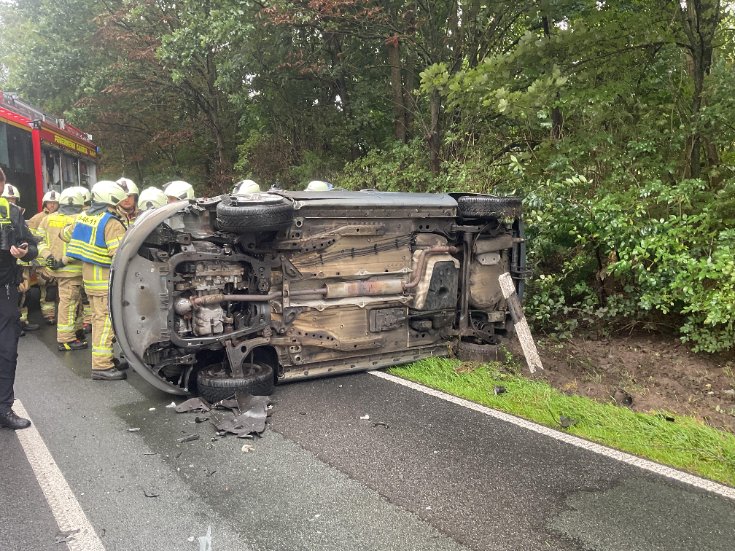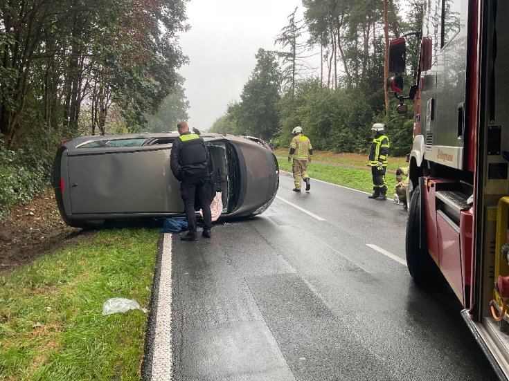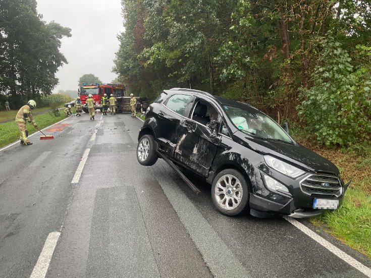 Zwei Senioren wurden am Donnerstagvormittag bei einem Verkehrsunfall auf der Garreler Straße Höhe Koppelweg leicht verletzt. Zu dem Unfall kam es nach bisherigen Ermittlungen der Polizei, als ein 82-jähriger Pkw-Fahrer aus Oldenburg die Garreler Straße in Fahrtrichtung Varrelbusch befuhr. Er beabsichtigte einen vorausfahrenden Trecker mit Anhänger zu überholen. Dieser wurde von einem 55-jährigen Ahlhorner geführt. Während des Überholvorganges übersah der Oldenburger einen vorausfahrenden Pkw, in dem ein 82-jähriger Fahrer und eine 83-jährige Beifahrerin aus Garrel saßen. Durch den Zusammenstoß kippte der Wagen des Garrelers auf die Seite. Das Auto des Oldenburgers prallte zudem gegen das Traktorgespann. Ersthelfer sowie erst eintreffende Polizeibeamte konnten den Mann bereits vor dem Eintreffen der Feuerwehr aus dem umgekippten Fahrzeug befreien. Die Beifahrerin, die noch eingeschlossen in dem Fahrzeug saß, wurde von der Feuerwehr Garrel mit einem Rettungsbrett befreit. Zuvor hatten die Feuerwehrmänner die Windschutzscheibe entfernt. Entgegen der ersten Meldung gab es bei dem Unfall keine eingeklemmten Personen. Nach der medizinischen Erstversorgung brachte der Rettungsdienst die beiden Garreler Senioren in umliegende Krankenhäuser. Der Fahrer des Treckers und der Oldenburger blieben unverletzt. Ehe die Feuerwehr Garrel, die mit fünf Fahrzeugen anrückte, den Einsatz beenden konnte, klemmte sie noch die Batterie ab und nahm auslaufende Betriebsstoffe mit Bindemittel auf. Somit nahm der Einsatz, der um 10:15 Uhr begann, eine Zeit von insgesamt 55 Minuten in Anspruch.